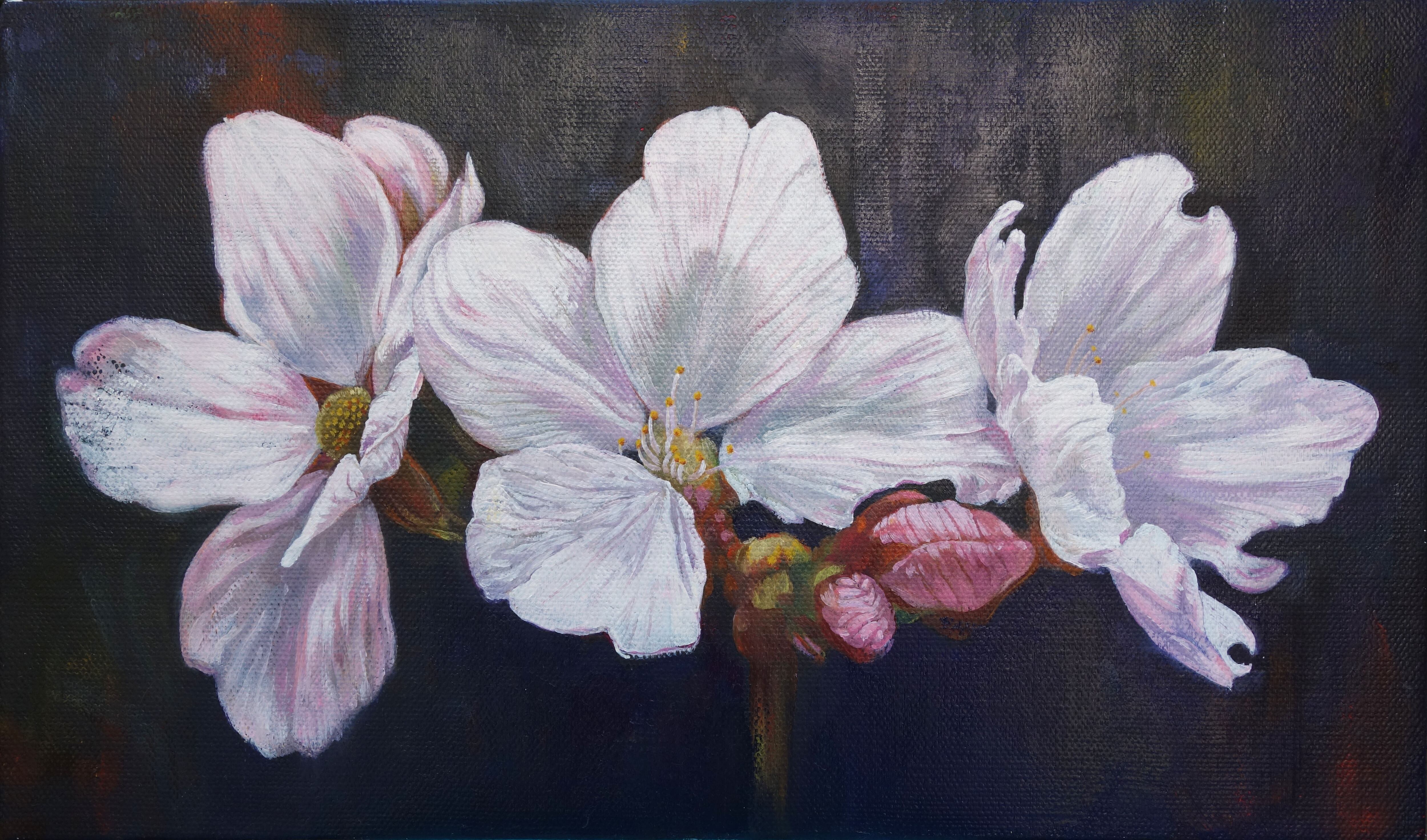 華やかな花の印象とは異なり、どこか寂しさを感じさせる。春のイメージが強いモチーフですが、季節問わず飾っていただける作品となっています。